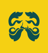 A dark green award ribbon with three yellow stars in the center, set against a yellow background.